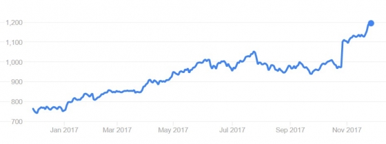 출처 마켓워치 아마존닷컴의 주가가 올해 두 자릿수의 상승률을 보이고 있다.